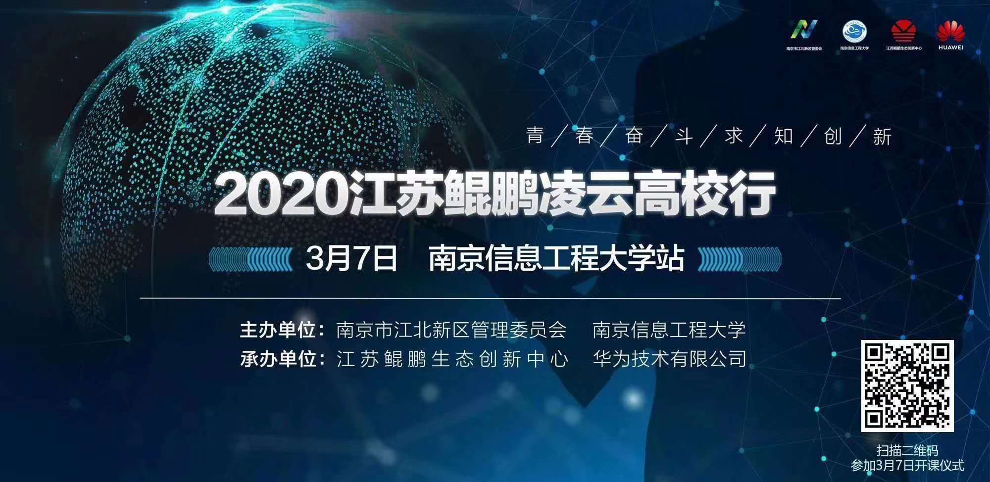 3月7日上午,华为江苏鲲鹏凌云高校行首站在我校如期举行,约350名同学参加了华为鲲鹏在线课堂。活动由南京市江北新区政府、南京信息工程大学主办,江苏鲲鹏生态创新中心、华为技术有限公司承办。